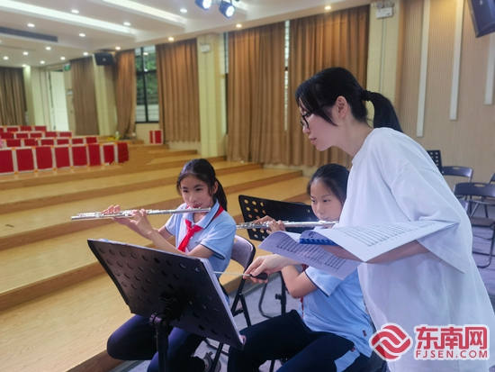 课后进行练习。学校 供图 “正是有像郑爸爸这样的家长陪伴成长,孩子们才能获得进步。除了家长们,乐团的发展也离不开社会各界的支持,比如共建单位泉州市歌舞剧团与泉州市交响乐团给我们提供了师资支持,用专业的知识培训学生;各有关单位、社区邀请乐团参加表演,让学生们有更多展示的舞台。”曾凤蓉表示,为了回馈家长与社会各界的支持,我们从2018年起每年都为乐团班举办毕业音乐会,并通过线下邀请、线上直播的形式,让孩子们展示学习成果、向家长与各界人士表达感谢。 教育是为了让孩子与美相遇,未来的路很长,小学只是起点。接下去,泉州市通政中心小学将以此次荣誉为新的起点,坚持办好“通政•海峡少儿交响乐团”,让音乐伴随孩子们前行,在音乐中学会感受美、欣赏美、创造美,让音乐成为生命中的光。 |