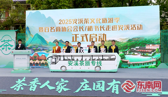 启动仪式。东南网记者 陈培源 摄 东南网4月27日讯(本网记者 陈培源 通讯员 吴圣超)茶香人家,庄园有约。4月26日,2025安溪茶文化旅游季暨百名商协会会长/秘书长走进安溪活动启幕。 本次活动以“一叶知春韵,一城藏茶香”为脉络,通过“约茶·问道”“约景·寻幽”“约剧·入梦”“约宴·品韵”“约会·共期”五大主题亮点,融合茶文化、茶产业、茶科技,全方位展示安溪铁观音的生态之美、技艺之韵、人文之魂。 活动当天,启动仪式在安溪铁观音集团举行,安溪县文体旅局正式发布2025安溪3条旅游精品路线,并预告了安溪“五一”假期50余场“兴文旅、促消费”活动,一场融合茶文化、艺术体验与乡村野趣的文旅大秀即将启幕。