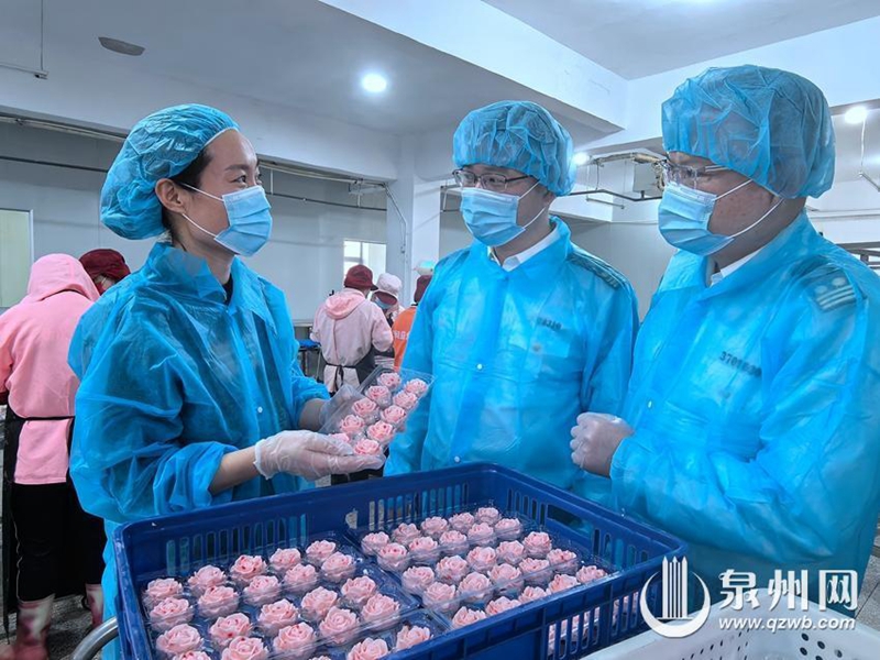 据悉,新昶益公司是今年新增备案的出口水产品生产加工企业。此前,该公司研发的鳕鱼“玫瑰”冷冻调理产品,以鳕鱼鱼浆制成逼真的玫瑰花形状,主供宴席和餐厅的高端食材,一投放国内市场,即以高颜值和鲜美口感成为“爆款”,也引起了海外华侨的注意,想把“泉州味”食品拓展到海外市场。这批订单主要供国外大型高端餐饮店使用,产品质量安全卫生要求高,需要冷链运输,对储存条件和通关时间要求高,企业无相关出口经验,担心无法按时交货。