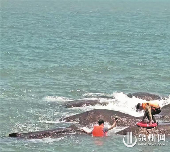 救援人员横渡海面施救 2日中午12点30分左右,泉州市港兴海上救援中心接到石狮海事处及相关救援电话,称有两名游客被困在祥芝镇小威海海域的礁石上,情况危急。 泉州市港兴海上救援中心迅速响应,队长邱松立即带领救援人员驾驶应急救援船赶赴现场。与此同时,石狮消防救援人员也火速赶到。在现场,救援人员发现正值涨潮期间,海水上涨速度很快,两名游客所处位置十分危险。 考虑到现场复杂的情况,救援人员果断决定采用横渡海面的方式接近礁石。救援人员小心翼翼地靠近,成功登上礁石,并为被困者穿上救生衣。在众人紧密配合下,最终成功将受困游客平安转移到岸上。 经了解,来自贵州的胡先生和妻子趁着“五一”来到海边游玩,因不熟悉潮汐规律,在礁石上停留过久,错过了返回岸上的最佳时期。 救援结束后,救援人员还对周边游客进行了劝导与提示,提醒大家切勿前往深的海域游玩逗留,预防类似险情再次发生。 救援中心提醒,每逢节假日及炎热天气,海边游客众多,游客被困礁石的事件时有发生。港兴海上救援中心每天都会安排救援人员在各海域巡逻,守护市民游客安全。广大游客一定要时刻留意身边状况,特别是要密切关注潮汐变化,提前了解潮汐信息,合理安排游玩时间和路线,避免前往危险区域。如遇紧急情况,请保持冷静,及时拨打报警电话或向附近的救援人员求助,确保自身安全。(泉州晚报融媒体记者宋万春 通讯员吴艺珠 文/图) |