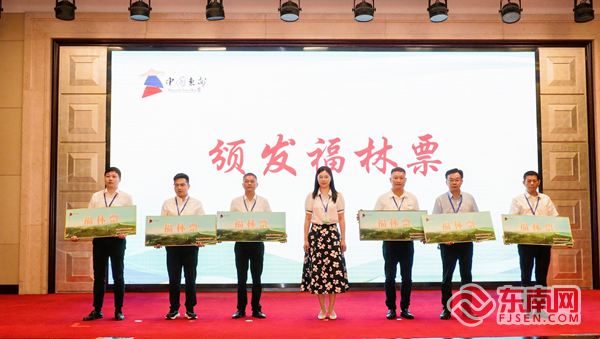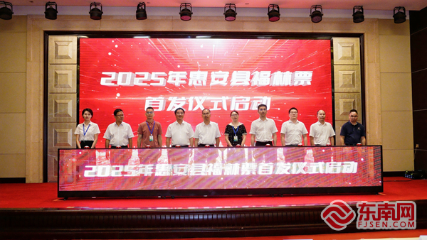 仪式现场。主办方 供图 仪式在宣传片《林间飞“票”绿浪涌金》中拉开帷幕。 活动现场,与会领导共同按下启动键,宣告“惠安县福林票”正式发行。这一模式创新融合林业资源证券化与产业协同发展,首批推出的6类福林票涵盖生态修复、林下经济、山海协作等领域,通过“龙头企业+订单原料+基地”模式,为乡村振兴注入可持续动能。仪式现场,中国农业发展银行惠安县支行向惠安县绿化建设投资公司授信4.46亿元。 “惠安以‘福林票’为媒,将沿海的开放活力与山区的生态禀赋深度融合,开创了全国首个以‘山海协作’为核心的沿海林业改革模式。”省林科院副院长、教授级高工丁珌指出,惠安“福林票”的推出不仅是集体林权制度改革的深化实践,其核心价值在于通过金融工具创新,将分散的林业资源整合为可量化、可流通、可增值的生态资产,为沿海地区探索出一条“生态保护-产业升级-共同富裕”的可持续发展路径。