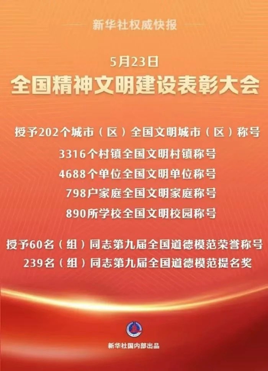 据新华社权威快报 5月23日全国精神文明建设表彰大会在北京召开授予泉州市惠安县、永春县等202个城市(区)全国文明城市(区)称号。