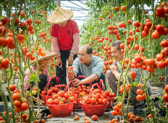 技术员正在田间教授农户分享种植技术。刘潇贤 摄 |