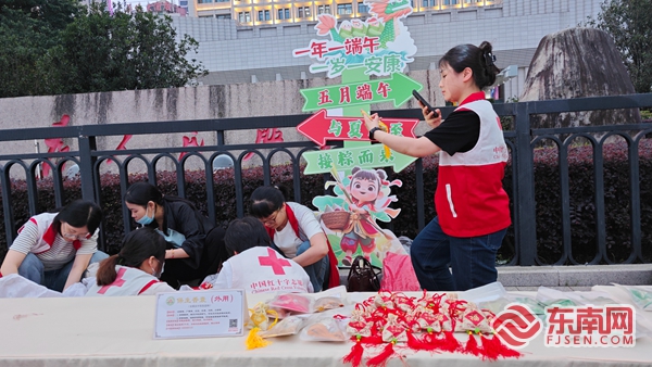 工作人员制作中药香囊送给市民。东南网记者 林杰 摄