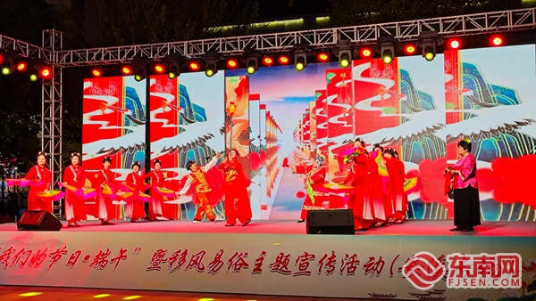 活动现场。东南网记者 林杰 摄 东南网5月31日讯(本网记者 林杰 通讯员 吴远景)5月30日,由泉州市委文明办、安溪县新时代文明实践中心主办的“我们的节日・端午”暨移风易俗主题宣传活动(安溪专场)在安溪县人民广场举行。活动以“弘扬传统文化,深化移风易俗”为主题,通过文艺演出、政策宣导、互动体验等多元形式,吸引数百名市民共赴传统文化与文明新风的盛宴。 泉州市委文明办副主任涂德基,安溪县委常委、宣传部部长吴振法等领导出席活动。活动由安溪县委宣传部、安溪县农业农村局、安溪县民政局、安溪县妇联等部门及凤城镇、城厢镇等6个乡镇党委、人民政府共同承办。 文艺演出异彩纷呈,以歌舞、南音、闽南四句、情景剧、朗诵等多种形式演绎弘扬传统文化。舞蹈《飘香》拉开帷幕,灵动舞姿勾勒出茶香与粽香交融的韵味。诗词朗诵《端午新声》则以时代视角重新诠释传统节俗的精神内核,少儿表演唱《子曰》用童声传递经典智慧;非遗贡球表演《三千两金》、南音《古早时》等节目轮番登场,展现闽南文化底蕴;情景剧《湖头新韵展新风》展现古镇在文明新风浸润下的现代变迁;安溪县委宣传部推动创作的闽南四句《厚养薄葬要推行》以乡音俚语传递移风易俗理念,让文明倡导更接地气;现代舞蹈《家乡月》《夏日寄情》则将传统元素与当代艺术融合,演绎对故土的眷恋与青春的活力;独唱《向往》则以“中国梦”主题歌曲激发全场奋进共鸣;压轴节目歌舞《赛龙舟》由实力唱将朱成与舞蹈团队合作,以激昂歌声和动感舞姿还原龙舟竞渡的热烈场景,将现场氛围推向高潮。