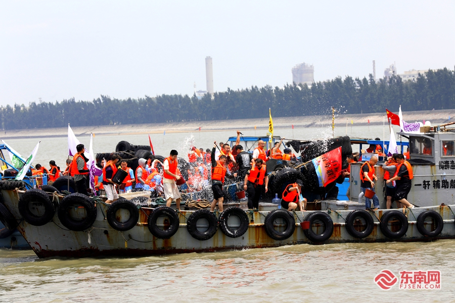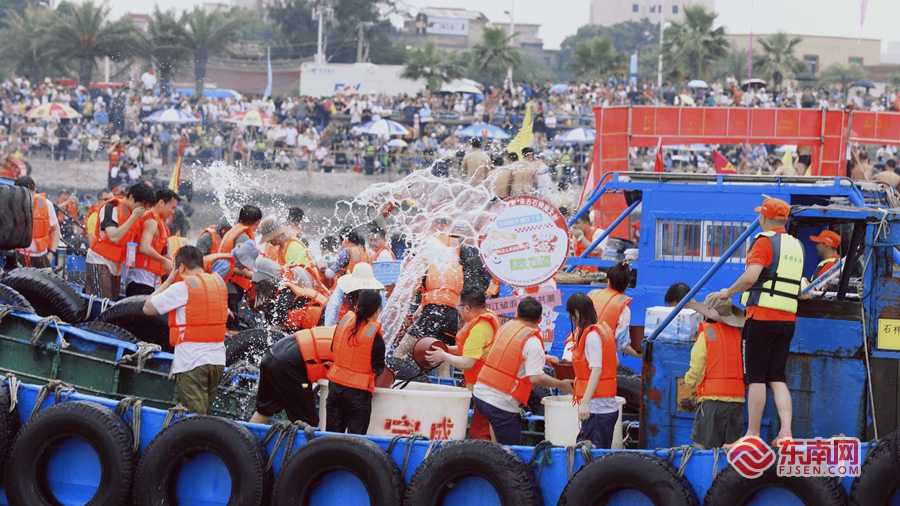 激情四射的海上泼水节,现场水花勾勒出充满生活气息的水上场景。东南网见习记者 杜志鑫 摄