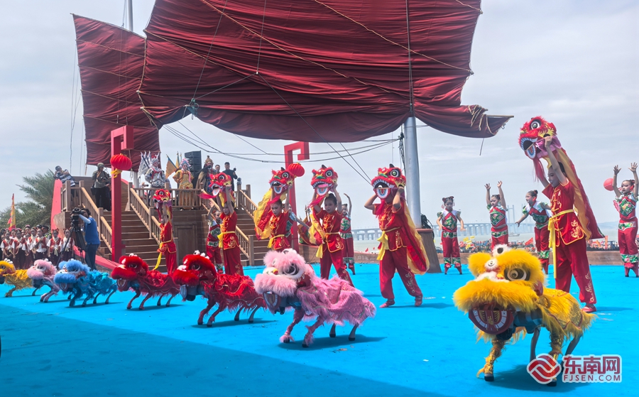 本届活动以“相约端午节•两岸一家亲”为主题,在保留海上泼水、海上捉鸭、龙舟邀请赛、民俗踩街、攻炮城、猜灯谜、闽台美食集市等经典项目的基础上,创新推出陆上泼水嘉年华、狮台青少年音乐会等特色活动。开幕式现场,台湾歌仔戏、金门傀儡戏与石狮高甲戏、提线木偶、高跷等非遗艺术同台献艺,萌态可掬的“小哪吒”与灵动的机器狮共舞,传统文化与现代科技在此奇妙碰撞,为观众带来耳目一新的视听体验。