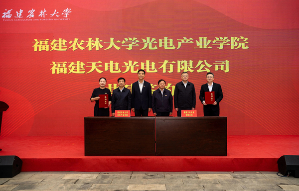 与天电光电签订共建协议 叶超 摄 更令福建农林大学“心动”的,是安溪日益壮阔的产业版图。坚持“传统产业焕新”与“新兴产业育强”双轮驱动,以产业链“链长制”催生“百业竞放”的繁荣景象。2024年,安溪入选全省县域重点产业链试点县(区),在泉州市“一枝独秀”。其中三大产业如同三颗璀璨明珠,绽放夺目光彩: 茶香氤氲处,是“双冠”辉映的茶产业。深植“三茶”统筹理念,构建起“从一叶到百业”的完整产业链。安溪铁观音荣膺茶界“双世遗”(全球重要农业文化遗产、人类非物质文化遗产),区域公共品牌价值高达1443.07亿元,连续十年蝉联全国茶叶类地理标志品牌价值“王座”。 数字浪潮间,是“生态成林”的数字经济。数字福建(安溪)产业园汇聚中科数遥、中科曙光等“头雁”企业,空天大数据、影视数字化等“三中心三基地”构建起郁郁葱葱的数字经济“生态圈”,剑指闽西南数字产业高地。 光电奔涌处,是链式腾飞的光电产业。在晶安光电、天电光电、信达光电等龙头企业带动下,形成“衬底—芯片—封装—应用”的LED百亿产业链。2024年,我县半导体照明产业集群入选国家中小企业特色产业集群。 “茶香、数字浪潮、光电‘芯’光,这些蓬勃涌动的产业脉动,与学校开拓的‘新蓝海’同频共振,让校地合作从最初的‘牵手’走向了‘深融’。”郭玉琼表示。