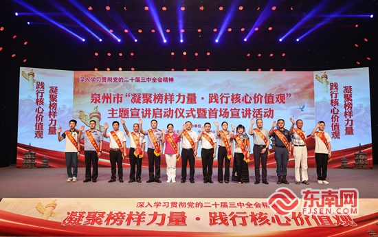 泉州市“凝聚榜样力量・践行核心价值观”主题宣讲启动仪式。泉州市委文明办 供图 道德铸魂 传播向善向上力量 “道德模范不仅是荣誉,更是责任与使命。”第九届全国道德模范提名奖获得者史玉阳的话语,道出了泉州公民道德建设的深刻内涵。 道德典型引领文明新风,榜样作用激发奋进力量。截至目前,泉州市8人次获全国道德模范提名奖,30人次获福建省道德模范,213人获泉州市道德模范,96人入选“中国好人”,204人入选“福建好人”,2人获“感动福建”十大人物,2人获全国新时代好少年,15人获省级新时代好少年,各项数量均居全省前列。 为让榜样力量触手可及,泉州推选22名“时代新风传播人”,开展“凝聚榜样力量・践行核心价值观”基层宣讲活动27场次。同时,落实道德模范帮扶礼遇措施,节日期间走访慰问生活困难的先进典型,让“德者有得”的价值导向深入人心。 聚焦立德树人,泉州深耕未成年人思想道德建设工作。围绕“扣好人生第一粒扣子”主题,开展“百园千校清明祭英烈”“童声里的中国”等道德实践活动,引导青少年厚植家国情怀;通过心理健康进社区、“我们的节日”主题活动,推动传统文化传承与青少年心理健康发展;打造“城乡学校少年宫”品牌,为未成年人搭建梦想舞台。 |
