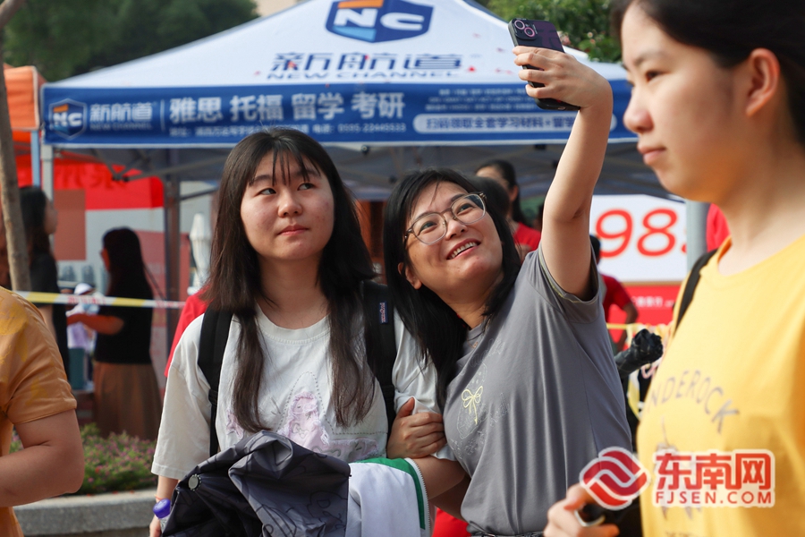 家长和考生自拍,留下具有意义的一刻。东南网记者 林婕 摄