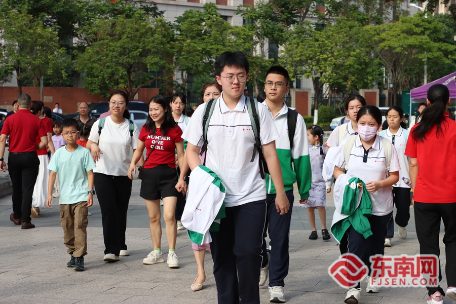 考生在家长的陪伴下自信步入考场。东南网记者 林婕 摄