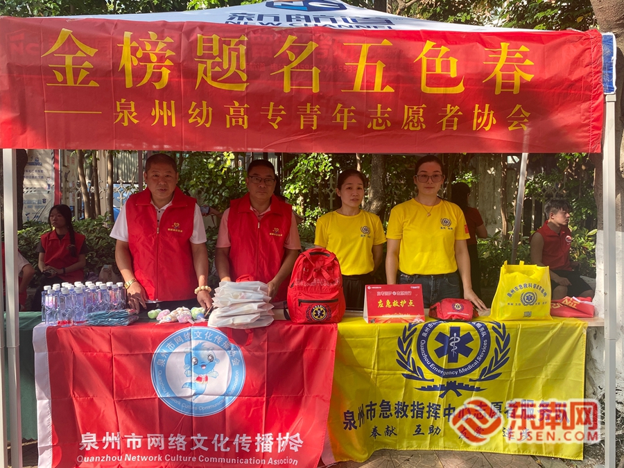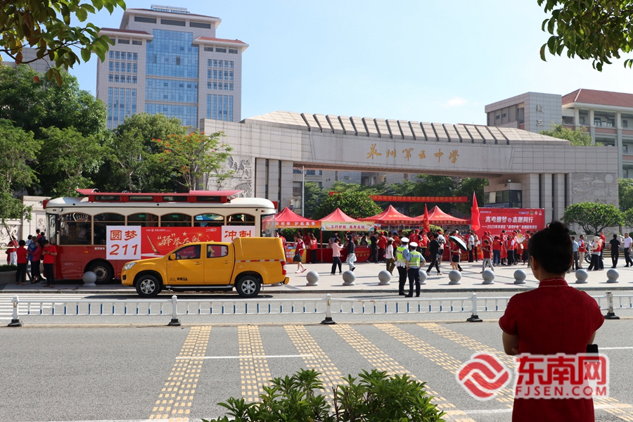 泉州实验中学考点外,志愿者们为考生“保驾护航”。东南网记者 黄雨昕 摄