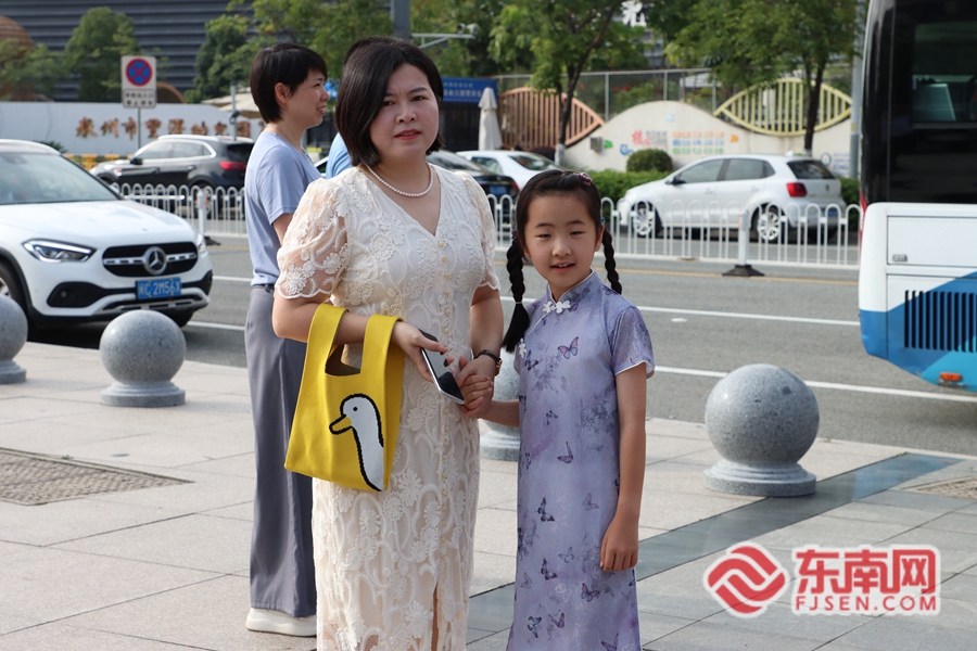 不光妈妈们穿起旗袍预示着“旗开得胜”,送考的小妹妹们也一身旗袍,很是可爱。东南网记者 林婕 摄