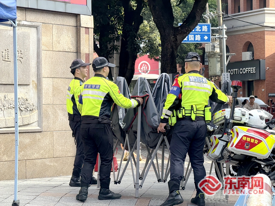 一大清早,鲤城交警便到泉州培元中学考点外忙碌,为考生提供服务。东南网记者 施远圻 摄