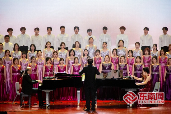 演出现场。泉州师范学院供图 东南网6月7日讯(通讯员 常飞云 吴亦伦 本网记者 谢玉妹)为庆祝中国共产党成立104周年,纪念中国人民抗日战争暨世界反法西斯战争胜利80周年,大力弘扬伟大建党精神和抗战精神,6月5日下午,泉州师范学院纪念中国人民抗日战争暨世界反法西斯战争胜利80周年音乐会在陈祖昌大礼堂倾情上演。 音乐会采取朗诵+舞蹈+合唱的形式,以朗诵《共产党宣言》、舞蹈《国际歌》及完整呈现《黄河大合唱》八乐章的恢弘形式,带领千余名师生穿越历史烽烟,在艺术的力量中重温斗争岁月,感悟信仰伟力,用“艺术之美”讴歌党、讴歌祖国、讴歌人民,用“艺术之美”点亮思政之光,打造一堂爱国主义教育课。 音乐会以《共产党宣言》中文首译本选段的深情朗诵拉开序幕。4名同学身着肃穆服装,在聚光灯下,铿锵有力的宣言词句掷地有声,字字千钧:“一个幽灵,共产主义的幽灵,在欧洲游荡……”真理之声穿越时空,点燃全场观众心中不灭的理想之火。随后,40名同学以当代舞形式精彩演绎《国际歌》,用充满张力的肢体语言,艺术化展现了无产阶级为争取解放而奋起斗争的壮阔图景,将“英特纳雄耐尔就一定要实现”的坚定信念融入每一个旋转与腾跃之中。 作为演出的重头戏,音乐与舞蹈学院混声合唱团再现了《黄河大合唱》这部民族史诗的恢弘气魄。从《黄河船夫曲》开启,紧接着《黄河颂》《黄河之水天上来》《黄水谣》《河边对口曲》《黄河怨》《保卫黄河》《怒吼吧!黄河》依次上演,通过独唱、朗诵、对唱等演绎方式,表达出磅礴雄伟、深邃壮阔的情感,感染了现场的上千名观众。最后,音乐会在合唱《歌唱祖国》的激昂歌声中落下帷幕。 此次音乐会不仅是对抗战英烈与世界反法西斯志士的崇高致敬,更是泉州师范学院传承红色文化基因,落实立德树人根本任务的深刻实践。 |