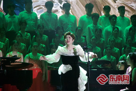 演出现场。泉州师范学院供图 东南网6月7日讯(通讯员 常飞云 吴亦伦 本网记者 谢玉妹)为庆祝中国共产党成立104周年,纪念中国人民抗日战争暨世界反法西斯战争胜利80周年,大力弘扬伟大建党精神和抗战精神,6月5日下午,泉州师范学院纪念中国人民抗日战争暨世界反法西斯战争胜利80周年音乐会在陈祖昌大礼堂倾情上演。 音乐会采取朗诵+舞蹈+合唱的形式,以朗诵《共产党宣言》、舞蹈《国际歌》及完整呈现《黄河大合唱》八乐章的恢弘形式,带领千余名师生穿越历史烽烟,在艺术的力量中重温斗争岁月,感悟信仰伟力,用“艺术之美”讴歌党、讴歌祖国、讴歌人民,用“艺术之美”点亮思政之光,打造一堂爱国主义教育课。 音乐会以《共产党宣言》中文首译本选段的深情朗诵拉开序幕。4名同学身着肃穆服装,在聚光灯下,铿锵有力的宣言词句掷地有声,字字千钧:“一个幽灵,共产主义的幽灵,在欧洲游荡……”真理之声穿越时空,点燃全场观众心中不灭的理想之火。随后,40名同学以当代舞形式精彩演绎《国际歌》,用充满张力的肢体语言,艺术化展现了无产阶级为争取解放而奋起斗争的壮阔图景,将“英特纳雄耐尔就一定要实现”的坚定信念融入每一个旋转与腾跃之中。 作为演出的重头戏,音乐与舞蹈学院混声合唱团再现了《黄河大合唱》这部民族史诗的恢弘气魄。从《黄河船夫曲》开启,紧接着《黄河颂》《黄河之水天上来》《黄水谣》《河边对口曲》《黄河怨》《保卫黄河》《怒吼吧!黄河》依次上演,通过独唱、朗诵、对唱等演绎方式,表达出磅礴雄伟、深邃壮阔的情感,感染了现场的上千名观众。最后,音乐会在合唱《歌唱祖国》的激昂歌声中落下帷幕。 此次音乐会不仅是对抗战英烈与世界反法西斯志士的崇高致敬,更是泉州师范学院传承红色文化基因,落实立德树人根本任务的深刻实践。