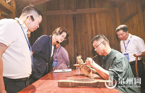 与会嘉宾在泉州非遗馆参观木偶头制作 6月14日“文化与自然遗产日”之际,由中央精神文明建设办公室主办的“保护文化遗产·我们在行动”宣传活动在泉州启幕。由中央和地方相关部门负责人、专家学者、群众及媒体代表组成的观摩团,深入泉州多处文化遗产点位,在古街巷陌的烟火气中,感受世遗之城的独特魅力,探寻文化遗产活态传承的“泉州智慧”,并给予高度评价。 非遗荟萃 技艺殿堂里的“文化共鸣” 泉州非物质文化遗产馆化身“技艺圣殿”,琳琅满目的木雕、陶瓷、金苍绣、花灯、福船等世界级和国家级非遗项目,为游客带来沉浸式体验,也令嘉宾赞叹不已。 湖北省随州市委宣传部副部长刘炳坤说:“泉州非遗在民间得到极好传承弘扬,保护经验非常值得学习。作为编钟古乐之乡,随州也需创新模式,让古老遗产焕发当代光彩。”广西梧州市委宣传部副部长钟燕萍用“目不暇接、叹为观止”来形容这次观摩:“文化和文明在这里得到了具象化的交融。” 广东省潮州市委文明办副主任林锐说:“泉州潮州文化同源共脉,相似的传统、遗迹与风俗让他备感亲切。两地皆有精湛木雕和木偶技艺(泉州提线木偶、潮州‘柴头戏’),各自拥有独特艺术(永春纸织画、麦秆剪贴画)。泉州成功申遗‘泉州:宋元中国的世界海洋商贸中心’,潮州也在积极筹备,这份共同执着彰显了古城守护者的文化自觉与合力。” 活态传承 烟火气里的“保护智慧” 泉州文化遗产保护的魅力,更在于其融入城市肌理与市民生活的“活态”模式。 在保留闽南传统红砖厝风貌的金鱼巷,重庆大足区委宣传部副部长段云奎赞赏其从“年久失修”到重现魅力的改造成效。中山大学中文系教授、广东省作协主席谢有顺高度评价泉州“微改造”理念:“没有把古街变成‘标本’,而是让居民生活与遗产保护共生、传统市井与现代业态并存,这本身就是‘群防群护’的生动体现。” 作为世遗点之一的开元寺,东西双塔巍然耸立,并非孤立的“文化孤岛”,而是市民休闲、游客体验的公共空间。黑龙江省委宣传部文明创建处处长刘涛首次来泉即被震撼:“泉州处处展露开放包容。文化遗产滋养自信从容的城市文明,城市文明又助推保护文化遗产,形成美妙的‘双向奔赴’。”