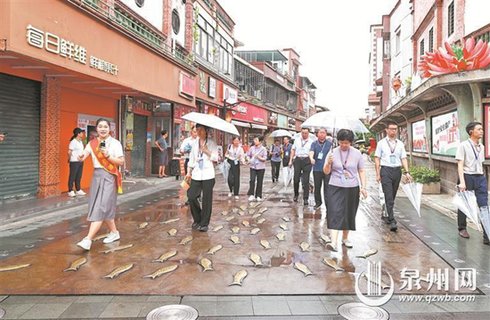 与会嘉宾走访金鱼巷 与会者指出,这种“遗产融入生活”模式赋予了历史建筑持续生命力,有效激发了社会参与。 国家统计局城市司二级巡视员陈宝红半年内两次到访泉州,每次都流连忘返。她称赞“‘半城烟火半城仙’名不虚传,在文物保护、文化传承,尤其是历史、民俗、古厝保护和生活方式延续等方面极具特色,精神文明建设工作也走在全国前列”。她建议泉州在保持特色的同时,加强旅游配套设施建设,吸引全球游客。 四川省委宣传部文明创建处处长吴勇刚抵达泉州首夜,便沉醉于中山路骑楼“∠45°刺桐幻幕”沉浸式演出:“非遗与城市、居民良好互动,城市才真正‘活’起来,这诠释了活化传承的真谛。”天津市和平区委宣传部精神文明建设工作科科长王二莎也感叹泉州古城魅力超乎想象,文化遗产与生活浑然一体。 全民守护 共同织就“文化图景” 泉州经验的核心之一是打破了文化遗产保护的“专业壁垒”,凝聚全民共识。 天津市南开区文明办主任姜新政说:“泉州的保护是‘活化’而非‘固化’,是‘体系化’与‘精细化’结合,既敬畏历史,又让遗产以‘活态’融入当下生活,在制度、全民参与和创新中实现立体化传承。”