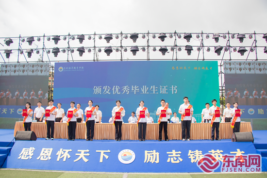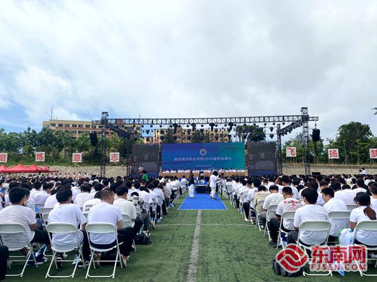 毕业典礼现场。东南网记者 黄雨昕 摄 东南网6月20日讯(本网记者 黄雨昕)6月20日,泉州海洋职业学院举行2025届毕业典礼,典礼以“星辰大海 奋楫征途”为主题,为5000余名毕业生的大学时光画上圆满句点。 现场,泉州海洋职业学院常务副校长唐学学,党委副书记、副校长李明灿分别宣读《泉州海洋职业学院关于批准2025届毕业生毕业的决定》《泉州海洋职业学院关于表彰2025届优秀毕业生的决定》,随后,该校领导对十位优秀毕业生代表进行表彰。