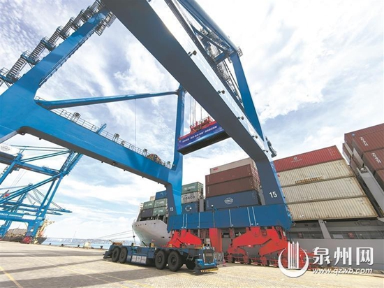 新能源汽车产品在泉州港石湖作业区搭上集装箱船