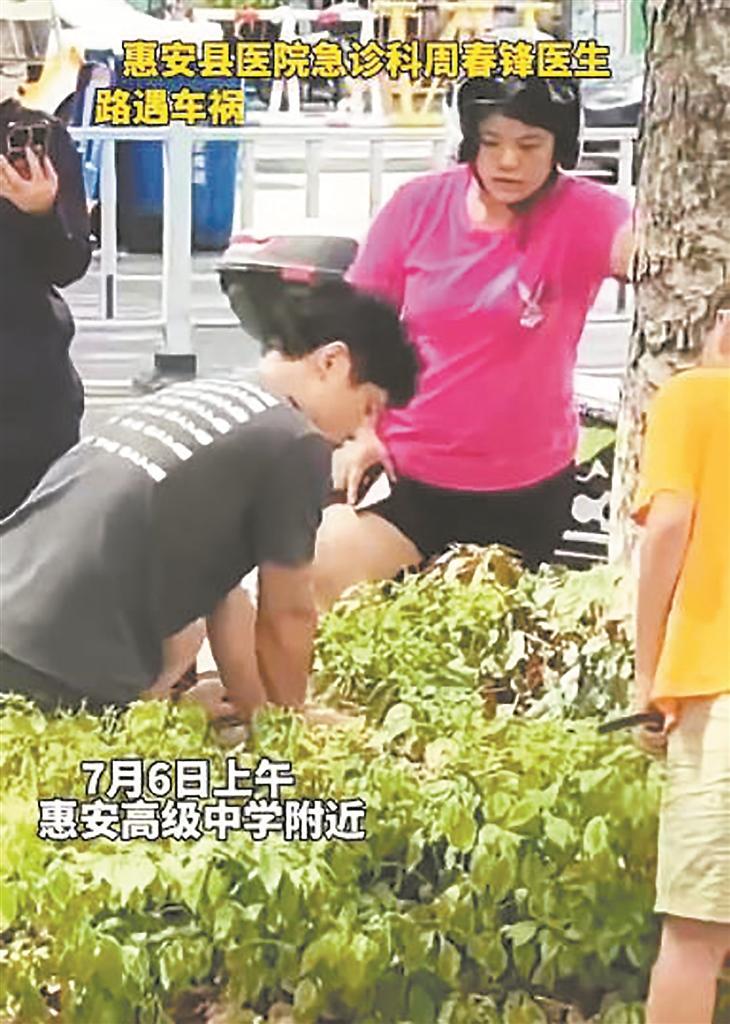 周春锋用通俗易懂的语言讲解急救知识(受访者 供图) 本报讯 (融媒体记者苏凯芳 通讯员赵乙玲)“别动她!我是急诊科医生,我来看看。”担心热心市民搬动车祸伤造成二次伤害,惠安县医院急诊科医生周春锋迅速采取行动。这暖心的一幕发生在7月6日9时许,休假外出购物的周春锋在惠安县高级中学附近偶遇一起车祸,他立即加入抢救伤员。 据周春锋回忆,事发当日,他途经事发路段时发现一处花坛边聚集了不少群众。出于职业本能,他主动上前了解情况。“当时,一位中年女性骑车撞上绿化树后倒地不起,失去意识。”周春锋说,他拨打了报警电话,并俯身检查伤者状况。 周春锋表示,当时伤者已无意识,呼吸微弱且面容发紫,胸部和腹部可能都遭受重创。发现伤者动脉搏动消失后,周春锋调整伤者体位,持续进行胸外按压。 约10分钟后,惠安县医院的急救车赶到现场。出车的急救医护人员是周春锋的同事,他们了解伤员情况后,接手了后续救援工作。“同事接手时,伤员心跳已恢复,但呼吸依然微弱。”在众人的协助下,伤员被平稳抬上急救车,此时,周春锋才放心离开。当天12时,回到工作岗位的周春锋得知,伤者已转入重症监护室治疗。目前,伤者整体情况已趋于稳定。 周春锋救人的场景被围观群众拍下,视频在朋友圈广泛传播,众多市民为他点赞。有网友评论:“幸好遇到的是急诊科医生,不然后果不堪设想。” 记者了解到,在急诊岗位工作了20年的周春锋,为人谦和,服务态度广受好评。日常工作中,面对患者的疑问他总是耐心解答,哪怕工作再忙也从不敷衍。同时,他也积极参与医院组织的各类急救培训活动,利用业余时间走进企业、学校、社区,手把手教授心肺复苏、止血包扎等实用技能,用通俗易懂的语言讲解急救知识,让更多人掌握在危急时刻自救互救的能力。他常说:“急救知识多传播一分,可能就多挽救一个生命。”这份对急救科普的热忱,正是他践行医生职责的生动写照。 |