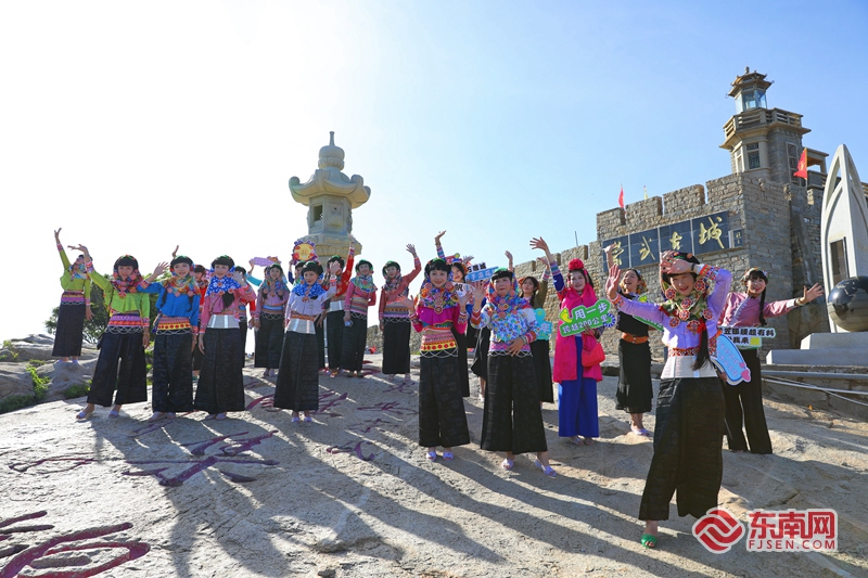 穿着不同时期惠女服饰的惠安女在崇武古城前打卡拍照。东南网记者 林婕 摄