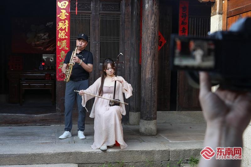 下王厝内,二胡与萨克斯表演《爱拼才会赢》。东南网记者 林婕 摄