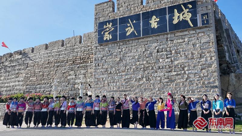 身着惠女服饰的女孩们在崇武古城前打卡拍照。东南网见习记者 杜志鑫 摄