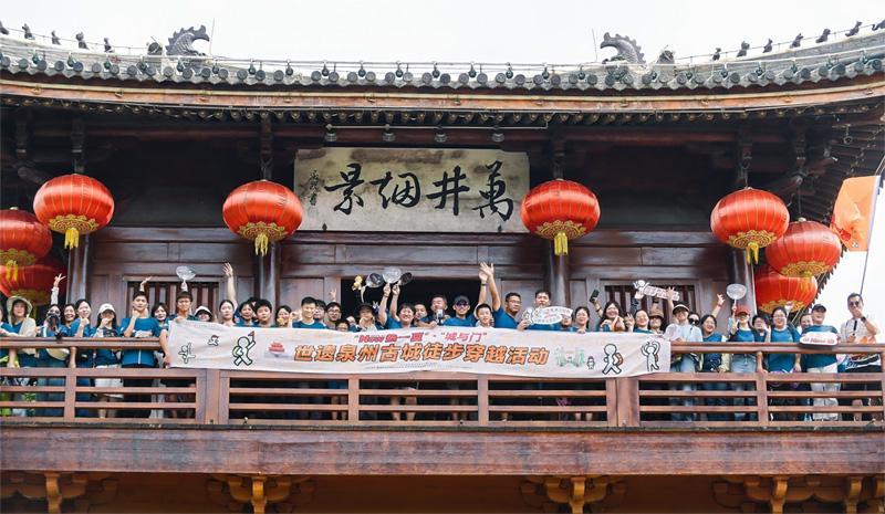 随着一声鸣笛响起,古城徒步穿越活动首场之行正式启程。源和1916、曾氏大宗祠、甘棠巷、曾井巷、孝感巷、钟楼、西街、威远楼、泉山门、小山丛竹、崇福寺……来自五湖四海的游客、长居泉州的市民,怀揣着一颗颗对古城赤忱的心,共赴这场跨越时空的行走对话。