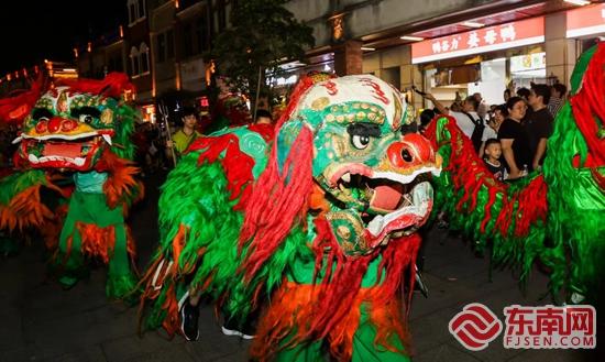 市民参加夜跑。鲤城区融媒体中心 供图 而“21天非遗健身打卡”将持续至8月29日,通过系统化、易参与的线上训练营形式,引导市民学习泉州青狮与五祖拳两大非遗体育项目,现场还邀请青狮、五祖拳团队演示拆解动作,帮助市民群众轻松入门。“完成21天打卡者,即可免费参与对应项目的一日研学活动。”主办方表示,非遗不仅是文化瑰宝,也是强身健体的有效方式,希望通过“非遗+健身”的跨界融合,让传统文化“活”起来、全民健身“潮”起来。 狮舞东方 闽台青狮携手共舞 当晚,现场还举行了“狮舞东方·潮聚鲤城”闽台青狮展演秀,来自闽台两地的十支青狮队伍轮番登场,同台演绎青狮技艺,展示青狮风采。台湾狮头旺剧团的醒狮还与泉州少林花拳研究会的长枪阵联袂演出,以狮会友、以武传情,精彩的表演引得现场观众连连叫好,生动展现了两岸文化同根、血脉相连。