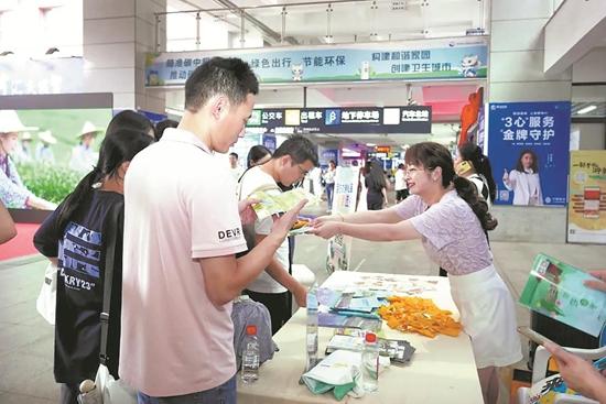 工作人员开展旅游推介 (受访者 供图) 据介绍,暑期以来,全市各地文旅部门先后在泉州动车站开展文旅推介活动,进行非遗展示,让游客了解泉州,爱上泉州。 月初,“跟着动车去旅游·畅享南安”文体旅推介活动在泉州动车站举行。憨态可掬的电音三太子伴随着动感音乐酷炫蹦迪,拉开了快闪的序幕。在旧门大鼓乐表演中,数名表演者身穿红衣,整齐列队,居中者双手奋力击鼓,与其他演奏者配合默契,锣鼓声、唢呐声喧天。 “很震撼,现场看大鼓乐表演,给人一鼓作气的感觉,以前没有见过。”来自福清的游客陈女士说。 几天前,一场双城非遗盛宴在泉州动车站闪现,石狮、永春两地山海联动,为乘客展示两地各具特色的非遗表演。现场白鹤拳起势生风,状元袍襟带翻飞,木偶戏执笔送福,高甲戏韵穿越古今,藤牌再现攻防巧技……非遗表演精彩连连,吸引众多旅客围观。 机场:闽南文化沉浸体验 目前,“海丝泉州欢迎鲤”暑期主题活动正在进行中,乘坐航班的旅客可前往泉州晋江国际机场站前广场及鲤城区文化宫、东街,打卡“七彩刺桐蛇”。集齐7只“七彩刺桐蛇”合影或视频发布至微信朋友圈、抖音等社交平台,即可在机场国内出发厅一楼问询台领取泉州世遗主题文创盲盒,把老君岩的禅意、清净寺的穹顶等元素化作随身纪念,让世遗记忆随行程延伸。 旅客詹先生说,旅游期间看到了七彩刺桐蛇,它们造型独特,融合了泉州地区独特的地域文化。 据介绍,泉州晋江国际机场在航站楼内精心打造闽南文化体验区,以“机场母亲的房子图书馆”为平台,创新采用“理论+故事+文艺”宣讲模式,精心策划项目,在各类传统节日和纪念日常态化开展特色文化活动,展示新时代非物质文化遗产保护传承的新成果新进展,让候机不仅是等待,更成为感知闽南文化的过程。今年以来,举办了“蟳埔簪花”体验、南少林武术快闪、侨乡记忆摄影作品展、“七彩刺桐蛇”进机场,以及舞龙、南音、木偶戏、高甲戏等闽南文化特色活动10余场次,让旅客亲身感受蟳埔女文化魅力、体验簪花乐趣,领略闽南文化的深邃内涵,让古老艺术在现代空港焕发生机,引发情感共鸣。 此外,还常态化举办闽南特色小吃进机场活动,面线糊、土笋冻、润饼菜、姜母鸭等特色美食,吸引旅客驻足品尝,并提供美食寄递服务,既征服旅客的味蕾,也让他们通过机场这个平台感受泉州美食的独特魅力。(泉州晚报融媒体记者 王金植) |