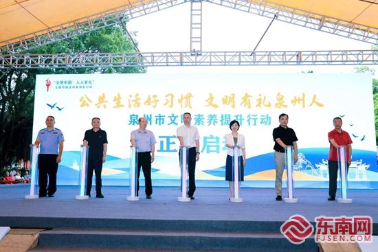 启动仪式。鲤城区委宣传部 供图 东南网8月21日讯(本网记者 施远圻)走文明飞行棋、挑战文明旅游拼图、参加环境保护有奖问答……今天傍晚,泉州市区府文庙热闹非凡,500多名市民、游客在宣传市集中开启学习之旅,在趣味闯关中提升文明素养。 据了解,按照“文明中国·人人有礼”主题传播活动和“明礼福建人”公共文明素养提升行动的部署要求,泉州市启动“公共生活好习惯 文明有礼泉州人”文明素养提升行动,旨在培育和践行社会主义核心价值观,着力打造“文明有象”特色品牌,提升市民公共文明素养和城市文明程度。