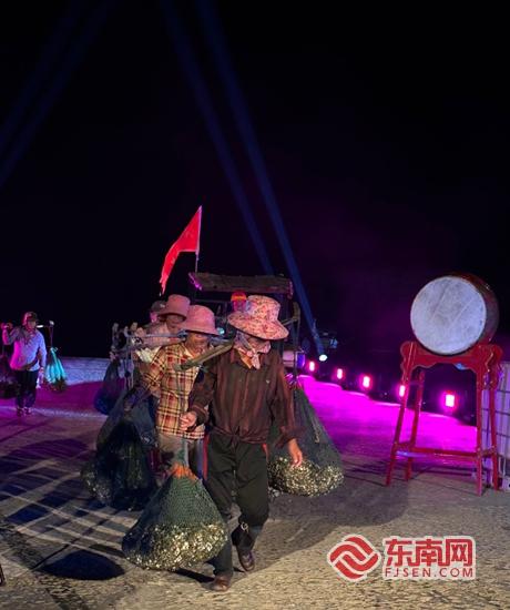 在《海的乐章》实景演绎中,挑着新鲜海产的渔民穿梭其间。东南网记者 陈诗婷 摄