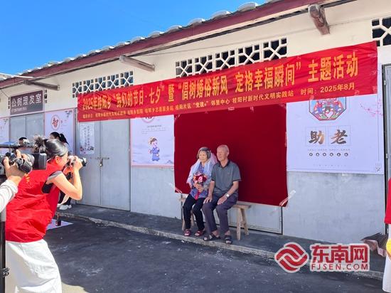 志愿者为老人们定格美好瞬间。桂阳乡 供图 东南网8月28日讯(本网记者 林婕 通讯员 颜凤铭)为弘扬中华优秀传统文化,倡导文明健康的婚俗新风,在七夕佳节来临之际,德化县桂阳乡新时代文明实践所联合桂阳乡志愿服务队、桂阳乡妇联等举办了“我们的节日・七夕”暨“倡树婚俗新风 定格幸福瞬间”系列主题活动,吸引了众多村民参与,现场氛围温馨而热烈。 活动现场最受瞩目的当属“为老年夫妻拍摄纪念证件照”环节,爷爷奶奶们从羞涩犹豫到绽放笑容的转变,让这份温暖多了几分动人的细节。 拍摄点刚布置好,志愿者们便捧着准备好的捧花与头纱迎向老人们,可当志愿者把鲜花和头纱递到奶奶们面前时,不少奶奶却连连摆手:“这么大年纪了,戴这个太惹眼啦!”“花拿着就行,头纱就不用了,怪不好意思的。”最终,在志愿者们的耐心劝说与陪伴下,奶奶们放下顾虑同意试一下,爷爷们也不甘“示弱”,主动拿起“墨镜”戴上配合。随后,快门声此起彼伏,捧花、头纱的仪式感,与老人们幸福的笑容交织在一起。一张张照片不仅定格了此刻的美好,更记录下他们相濡以沫的岁月。 |