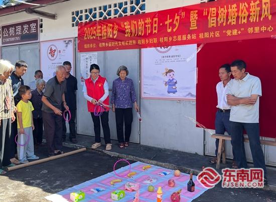 游戏区活动现场热闹非凡。桂阳乡 供图 从拍摄点老夫妻相视而笑的幸福定格,到长者活动之家句句恳切的新风倡导,再到知识套圈区里村民们在游戏中学习、在欢呼中领悟的热闹场景,每一个环节都在传递中华优秀传统文化的根脉与文明健康的婚俗理念。 下一步,桂阳乡将持续发力,创新宣传形式、强化村规民约,让每一个“我们的节日”都能成为传递美好、弘扬新风的载体,让村民的日子文明新风的滋养下愈发红火、愈发幸福。 |