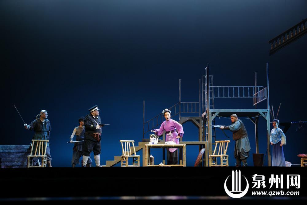 作品以“蔡母”为主线,用她的视角呈现泉州华侨抗战史。 讲述最美“烂尾楼”故事 《朝东楼》由泉州市高甲戏传承中心和晋江市高甲柯派表演艺术中心携手创排演出,讲述了泉州晋江梧林村蔡咸斜一家建造朝东楼的故事。“这是一部极具地方特色的作品,反映闽南人下南洋的历史,该楼建了一半抗日战争爆发,主人公因此停止建楼,不仅捐出全部家资支持抗日,两个儿子也上前线杀敌,留下了可歌可泣的泉州华侨抗战故事。”中国戏曲导演学会副会长、一级导演郭小男表示。 “作品以‘蔡母’为主线,用‘番客婶’的视角呈现泉州华侨抗战史。大儿子被她送上抗战前线,受了重伤;二儿子瞒着大家上前线,结果死在战场上。”在剧中饰演“蔡母”的泉州市高甲戏传承中心优秀青年演员陈凤英表示,“蔡母”是位深明大义的闽南女人,对家人是慈爱,对外来侵略者则十分硬气。 如今,泉州晋江梧林村的“朝东楼”,已被誉为最美“烂尾楼”,成为历史的记忆与文化的鲜活载体。无数后人前来瞻仰,聆听侨胞爱国抗日的动人故事,感受华侨村先辈在抗日救国的战争中所作出的巨大贡献。 探索开拓高甲戏的舞台呈现 据介绍,高甲戏《朝东楼》的创排得到省内外戏剧界关注,为了保障剧目高质量完成创作,集结了郭小男、张明媛、陈娟娟等八位重量级主创人员参与。主创人员中,有享受国务院政府特殊津贴的著名剧作家,有多次荣获国家级艺术大奖的著名导演,也有著名高甲戏表演艺术家。该剧是郭小男执导的第二部高甲戏作品,此前他执导的高甲戏《围头新娘》获中宣部第十七届精神文明建设“五个一工程”优秀作品奖。 郭小男表示,目前,高甲戏正处于向全国大剧种攀升的过程,更多地探索现代戏,可以进一步开拓剧种的舞台呈现。一个剧种要发展,需要有超前的意识,如果永远在丑角、传统高甲戏的框架里,虽然有许多优秀的传统剧目可以演出,但发展也会受到限制,因此这部作品的创排对一个剧种的发展也是一次难得的机遇。 为纪念抗战胜利80周年创作 《朝东楼》是结合纪念中国人民抗日战争暨世界反法西斯战争胜利80周年重要时间节点创作的作品,也是继《围头新娘》《阿旺的幸福生活》之后,泉州高甲戏创作的现实主义题材“三部曲”之一,这三部作品各具特色。 “女人守家为国,男人舍家报国,这部作品亮点众多,极具地域性、现代性、艺术性,主题突出,深受广大戏迷观众,许多观众抢着购票,赶到剧院观看演出。”泉州市高甲戏传承中心主任周杰俊说,高甲戏《朝东楼》音乐十分有特色,声腔十分丰富,不管是主旋律烘托、场面渲染,还是人物表达都非常到位,唱腔非常优雅甜美,给广大观众带来心灵的冲击和艺术的享受。这部作品舞美创意十分空灵,用特色的艺术手段表现“朝东楼”,舞台艺术呈现背后的历史故事。 周杰俊说,高甲戏《朝东楼》创排过程中,邀请了省内外专家到场观看,提出宝贵的修改意见,今后还将继续边演边改,力争打造成为具有国家艺术高度、专家认可、观众喜爱的高甲戏时代佳作、优秀保留剧目。(泉州晚报融媒体记者 陈智勇 张九强 通讯员 郭雅靖 林凤锦 文/图) |