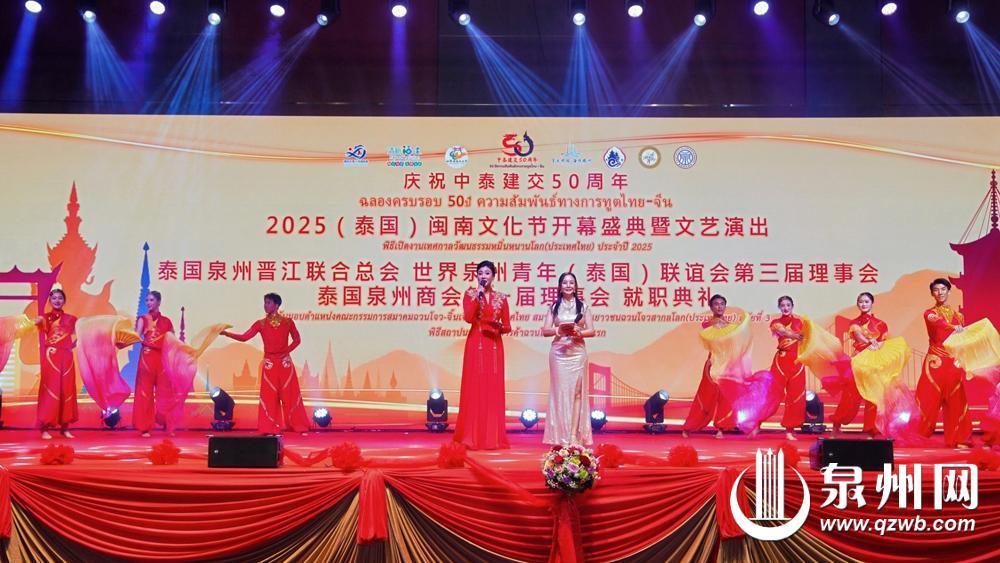 2025(泰国)闽南文化节开幕式文艺演出(主办方供图) 开幕式文艺演出精彩纷呈,海峡两岸及泰国艺术家联袂呈现14个精彩节目,既有充满浓郁闽南风情的梨园戏《喜相逢》、南音表演《一身爱到我君乡里》、打城戏《献铙钹》、南少林武术《少林雄风》、闽南歌舞《盛世华章》等,又有独具特色的台湾节目《仙魔奇缘》以及泰国传统节目《神猴孔剧》《采茶》等。火遍泰国的泰文歌曲《占巴花》歌手现场献唱助阵。演出在耳熟能详的闽南语经典歌曲《爱拼才会赢》中圆满落幕,唤起海内外乡亲共同的闽南文化记忆与情感共鸣。 今年正值中泰建交50周年。闽南文化节首次在泰国举办,旨在以闽南文化为桥梁,汇聚来自海峡两岸、泰国及海外的众多嘉宾,畅叙乡谊、共谋发展。本届文化节不仅呈现了一场精彩的文化盛宴,更是中泰两国人民心手相连、共创未来的生动写照。通过这一民间交流平台,既深化了中泰文化互鉴和友好情谊,也进一步增强了两岸同胞的文化认同与情感联结,为推动两岸融合发展注入了新的活力。 值得一提的是,本届文化节还携手启动了2025泰国·中国福建(泉州)电视周,标志着中泰在媒体和文化产业合作的进一步深化;同步启动了JOOX酷狗音乐“中华情·四海心”第二届全球歌曲征集大赛,希望通过原创和AI两大赛道,用音乐传播中华优秀传统文化,助推中国原创音乐走向世界。 其间,举行了泰国泉州晋江联合总会、世界泉州青年(泰国)联谊会第三届理事会以及泰国泉州商会第一届理事会就职典礼。 据悉,闽南文化节自2012年至今,已先后在10个国家(地区)城市成功举办,2026闽南文化节将在新加坡举行。(泉州晚报融媒体记者彭斌 陈智勇 通讯员刘攀) 延伸阅读 配套多彩活动 尽展闽南文化 9月8日,作为闽南文化节重要内容之一的闽南文化论坛举办,闽南文化节期间,还配套举办了闽南传统技艺及文创精品展,展示来自泉州、漳州等地的艺术陶瓷、石玉雕(影雕)、潘山庙宇木雕、金苍绣、传统花灯、木偶头及贝雕等多个品类约300件(组)工艺精品。闽南老字号品鉴会邀请省级乌龙茶技艺非遗传承人现场进行铁观音品鉴推广,组织中华老字号、“古早味”代表永春老醋、养脾散、麻粩等赴泰展销,并设置中华茶文化、香道、簪花围及中泰传统服饰体验活动。 现场还设有“宋元东方第一大港”摄影艺术展、“海丝记忆·侨史敦煌”侨批展、“根脉寻踪”族谱展、妈祖文化展览等,并展出巨幅唐卡《宋元东方大港》(7.2米×1.6米),引领观众深入感受闽南深厚的历史底蕴与文化魅力,进一步推动闽南文化、海洋文化与侨文化的国际传播与经贸合作。(融媒体记者彭斌 陈智勇 通讯员刘攀) |