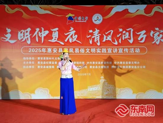 活动现场。惠安文明网 供图 东南网9月14日讯(本网记者 林杰 通讯员 张鹏)近日,由惠安县纪委监委、惠安县委组织部、惠安县委宣传部、惠安县委文明办联合举办的“文明仲夏夜・清风润万家”移风易俗文明实践宣传宣讲活动收官。本次系列活动历时一个半月,结合“惠明理·理论周周讲”主题,深入拓展新时代文明实践内涵,开展了一系列群众喜闻乐见、便民利民的文明实践活动,将移风易俗理念送入千家万户。 县体育中心、中新花园、东湖公园、崇武镇、辋川镇……纵观十场活动,实现了从城区公园到乡镇村落的文明覆盖。每场均以“群众喜闻乐见、便民利民”为核心,融合文艺展演、主题宣传、理论宣讲、互动游戏等多元形式,让文明实践既有“文化味”,又有“生活气”。文艺展演环节,传统与现代元素碰撞交融:惠女服饰秀尽显惠安本土文化特色,将惠安女勤劳坚韧的精神风貌展现得淋漓尽致;闽南四句以诙谐幽默的语言,将移风易俗、文明生活等理念融入其中,朗朗上口的句式让群众听得懂、记得住;此外,动感街舞、悠扬闽南语歌曲、惊奇科学实验秀、铿锵快板、典雅南音、刚柔并济的太极表演等节目轮番登场,每场演出都点燃现场氛围,赢得观众阵阵掌声。