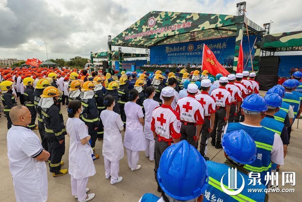 当天,各县(市、区)、泉州开发区、泉州台商投资区也同步开展了警报试鸣和相关演练活动,全市46000多人参加。泉州国防动员系统积极探索传统专业保障队伍与新域新质力量的有机融合,通过警报试鸣和防空袭综合演练,全面提升城市综合防护能力。(融媒体记者陈林森/文 陈起拓/图)