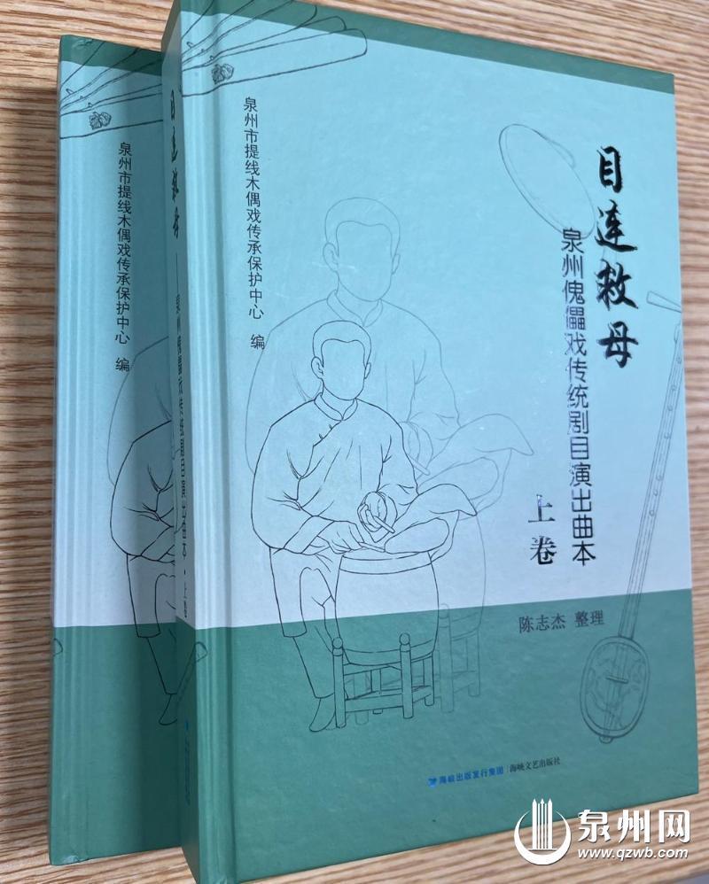 泉州市提线木偶戏传承保护中心编著出版《目连救母—泉州傀儡戏传统剧目演出曲本》 国家级传承人陈志杰师从杨度及司鼓名家龚天赐,从艺四十余年,掌握了大量濒临失传的传统曲牌。他耗时两年多,“经过前前后后数十遍的记录、校正、修订”,完成了《目连救母——泉州傀儡戏传统剧目演出曲本》。该书收录377首唱腔曲谱(实际运用曲牌122首)及19首间奏谱。陈志杰对“同曲牌不同唱法”逐一注明,并自编了“泉州傀儡调传统调高称谓对照表”,为后续传承扫清障碍。 国家级传承人林聪鹏等舞美技师们,完成了全套木偶造型、服饰及砌末道具的全新制作,再现古剧风采。