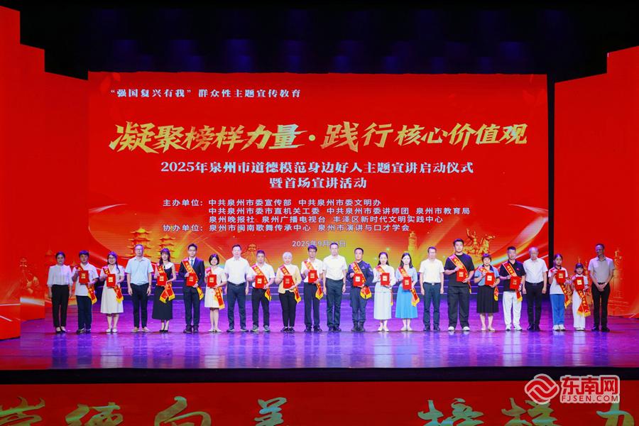 东南网9月23日讯(本网记者 吴雅艺 见习记者 杜志鑫 通讯员 程兴华)为弘扬崇高道德精神,着力培育时代新人,9月22日,2025年度泉州市“凝聚榜样力量·践行核心价值观”主题宣讲启动仪式暨首场宣讲活动在泉州市闽南歌舞传承中心举行,通过宣讲的形式,宣扬助人为乐、见义勇为、诚实守信、敬业奉献、孝老爱亲等道德典型的崇高精神,在全市形成学习、关爱、崇尚、争当先进典型的浓厚氛围。