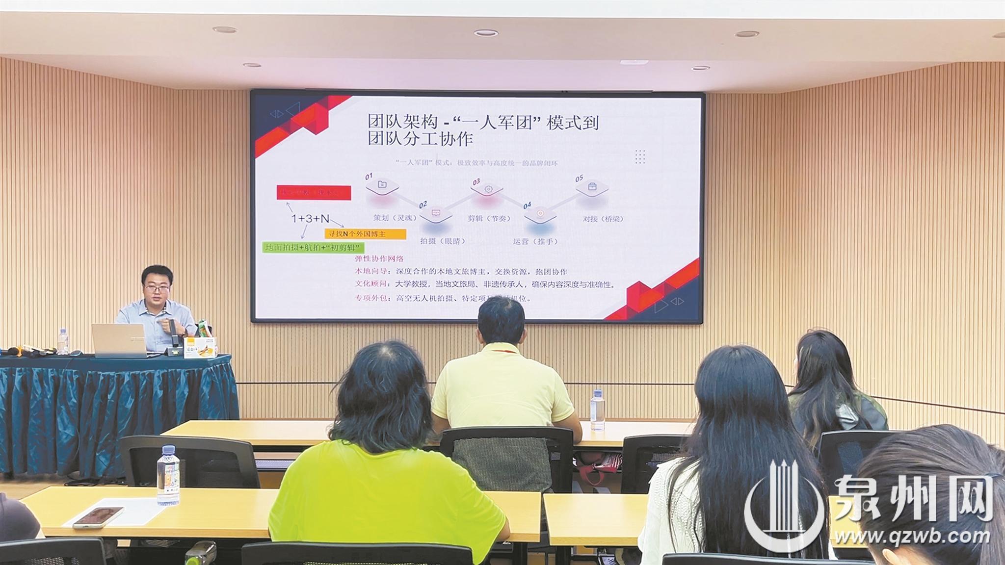 9月22日至23日,以“讲好世遗泉州故事,赋能海丝文旅传播”为主题的2025年泉州对外文旅交流与传播人才培训班第一期,在泉州海外交通史博物馆二楼学术报告厅成功举办。专家老师们从各自的专业领域切入,围绕泉州有什么、为什么要讲好泉州故事、怎样讲好泉州故事等问题展开剖析,干货满满的课程令60余位学员纷纷表示受益良多。 本次培训班由中外文化和旅游交流中心指导、泉州市文化广电和旅游局主办。第一期活动招募学员60余名,既有各县(市、区)文旅系统的工作人员、博物馆及文化场馆讲解员,也有旅游从业者、相关领域公司职员、自媒体博主。虽然大家来自各行各业,但有着共同的热爱——热爱泉州、热爱宣传泉州。 培训班师资阵容强大,课程内容丰富实用。泉州海外交通史博物馆馆长、中国海外交通史研究会秘书长林瀚和资深泉州文化研究者潘丰源,向大家讲解了泉州独特而杰出的世界级文化遗产资源;华侨大学海外华文媒体研究中心主任王琰聚焦“跨文化传播”,教大家如何突破文化差异,用“年轻态、健康体”让泉州故事在国际舞台上鲜活传递;纽约州立大学双学士、资深文旅自媒体人武靖结合云南文旅案例,通过拆解爆款作品,分享如何“用好玩的方式做有意义的事”;链境(厦门)科技资深培训师雨青则以丰富的操作经验,带大家解锁海外社交媒体平台的规则逻辑、运营技巧等实用技能。
