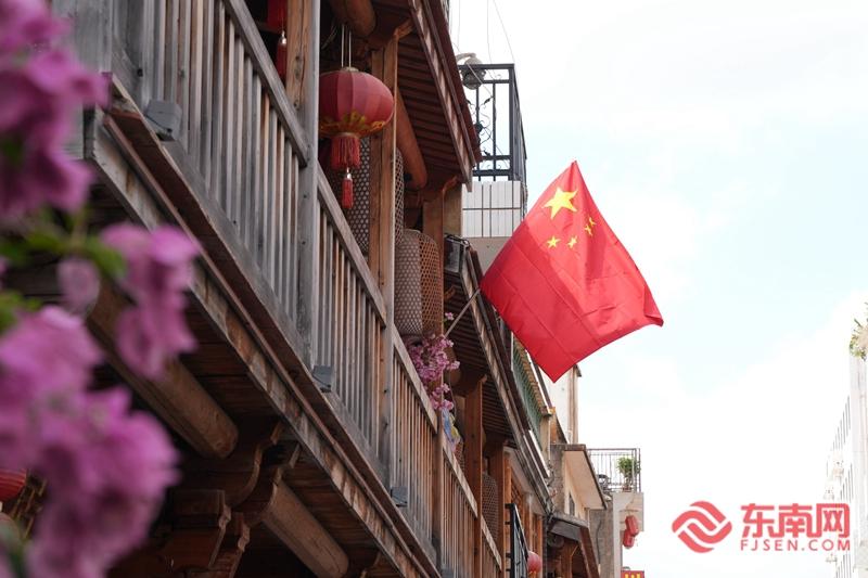 在泉州中山路,五星红旗在风中招展。东南网见习记者 杜志鑫 摄