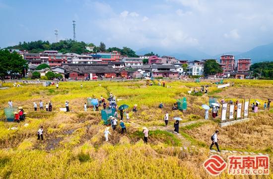 田野劳作现场。陈志鹏 摄 东南网10月2日讯(本网记者 施远圻 通讯员 陈培芳)国庆中秋假期首日,永春县以“一举夺魁趣永春”为主题,整合全域文旅资源,推出田野劳作体验、非遗文化展演等多元活动,为市民游客打造 “好玩、有料、够味” 的假日盛宴,正式拉开假期文旅活动序幕。 当天上午10 时,桃城镇在花石社区稻田举办 “金穗盈秋收‘稻’快乐” 国庆趣丰收比赛,全镇12支单位代表队参赛。随着裁判哨声响起,各队伍迅速进入状态,割稻的“唰唰”声、打谷的“砰砰”声交织成丰收乐章。队员们分工协作,收割、捆扎、脱粒一气呵成,金黄稻穗在阳光下闪耀,汗水与笑容相映,构成动人的农耕画卷。 “大家配合得特别好,有人割稻、有人打谷、有人搬稻,速度挺快。就是平时很少干农活,现在亲身体验才知道农民有多辛苦。”参赛队员王玲玲感慨道。永春县宏裕家庭农场代表队则凭借队员的农活经验与默契配合斩获第一名,队员余小圆表示:“我们队员平时在家会做些农活,每个环节都分配得当,能拿第一很荣幸。”