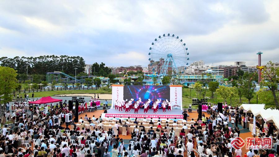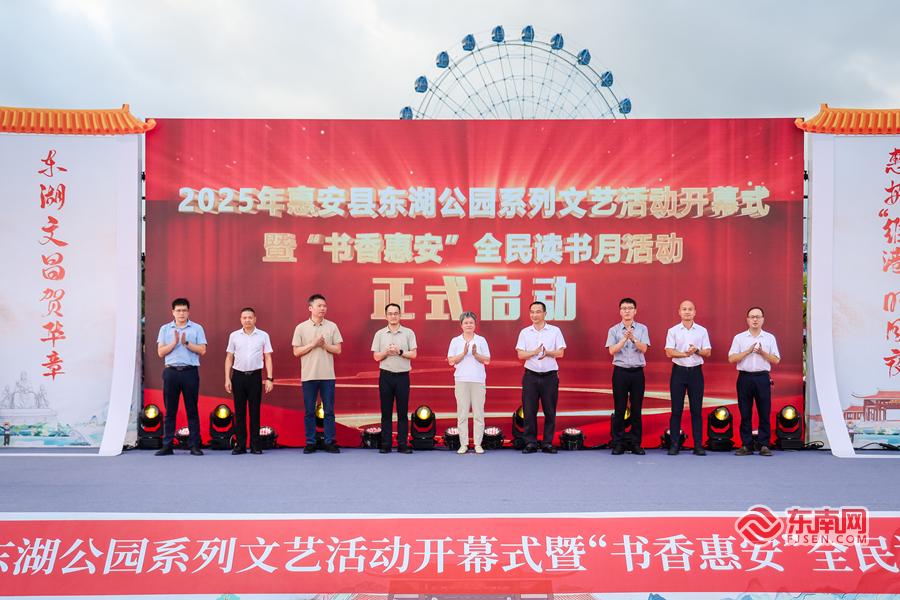 东南网10月2日讯(本网记者 林杰 通讯员 游雯星)10月1日国庆节,惠安县东湖公园洋溢着喜庆祥和的氛围,“惠安‘维港’明月夜,东湖文昌贺华章”——2025年惠安县东湖公园国庆系列文艺活动开幕式暨“书香惠安”全民读书月活动启动仪式在此举行。