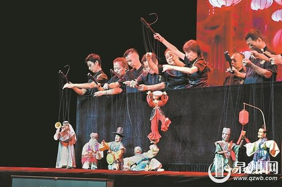 木偶精巧、南音婉转、梨园雅致、宋江阵雄浑……国庆中秋双节同庆,泉州城内好戏连台。从各大戏院到街头巷尾,不仅有本土戏曲的活态传承,更有英歌舞、川剧、京剧、创新戏等剧种惊艳亮相,吸引市民游客放慢脚步,循着戏韵悠游世遗泉州,沉浸式体验流淌于市井烟火间的独特文化魅力。 经典剧目 “精彩名不虚传” 连日来,泉州木偶剧院场场座无虚席,《贵妃醉酒》《小沙弥下山》《钟馗醉酒》《驯候》《元宵乐》等经典剧目轮番上演,现场掌声此起彼伏。 “哇,媒婆怎么变仙女了!”舞台上,只见四个“媒婆”木偶卧倒在地,演员们快速理线、放线,随着“锵”的一声锣响,站起来的木偶变成了衣袂飘飘的“仙女”,在演员的一勾一提中翩翩起舞,赢得满堂喝彩。“这个‘一秒换装’太厉害了,精彩名不虚传!”来自江苏的徐女士难掩兴奋,她说自己早已在社交媒体上刷到过许多次泉州提线木偶的表演视频,尽管知道下一步就要换装了,但在现场亲眼看到时依然感到惊喜非常。