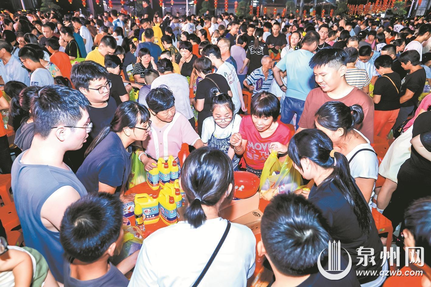 10月5日,南安水头镇埕边村张灯结彩喜气洋洋。2025年“和谐埕边 百桌千人”中秋博饼游园会盛大开启,30多名港澳侨亲与村民欢聚一堂,共赴一场兼具传统韵味与邻里温情的中秋盛宴。活动现场不仅有精彩的歌舞节目,更有氛围感十足的“百桌千人博饼”。猜灯谜、沙包投掷盘、投壶、蹴鞠等各种趣味游园项目也让活动增添了趣味。村民们在互动中拉近彼此距离,在欢声笑语中感受优秀传统文化的魅力。