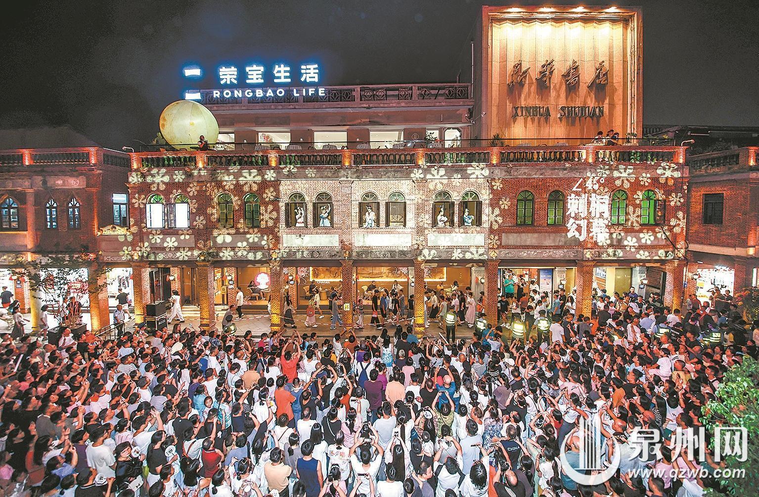 骑楼为幕,光影为笔,打造“一窗一景”沉浸式观演空间,将中秋的团圆、祝福与诗意镌刻于骑楼砖瓦之间。昨晚,由鲤城区委宣传部、鲤城文投集团联合主办的“刺桐幻幕”“我们的节日——刺桐中秋奇妙月”国潮快闪专场在中山路震撼上演。20分钟的光影奇旅,为市民游客带来一场沉浸式的视听盛宴。现场欢呼声和惊叹声此起彼伏,此景,是大家记忆中的中秋,更是孩子们想象中的童话。
