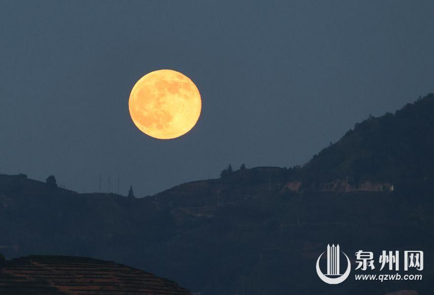 10月7日,记者在安溪县感德镇茶山拍摄的圆月。(张九强 摄)