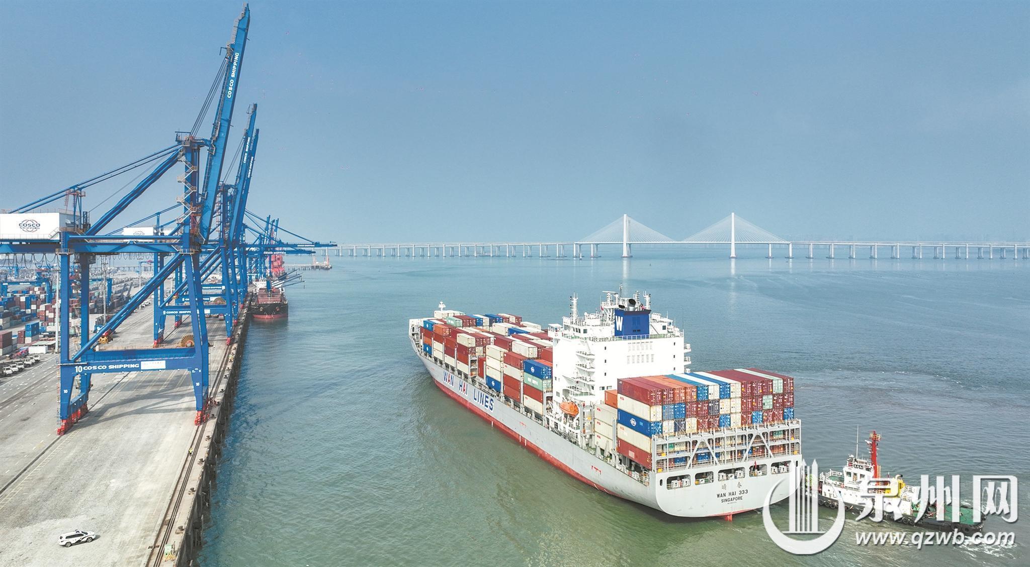 目前,泉州港共有外贸集装箱航线15条,可到达新加坡、雅加达、泗水港、巴生港、仁川等18个城市(地区)。(泉州晚报融媒体记者刘文艳 林劲峰 通讯员黄忠族 范英帅 文/图)